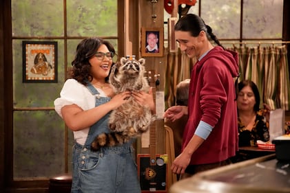 Happy's Place - Season 2 HAPPY'S PLACE -- "I've Got a Secret" Episode 202 -- Pictured: (l-r) Belissa Escobedo as Isabella, Tokala Black Elk as Takoda -- (Photo by: Casey Durkin/NBC via Getty Images) (NBC/Casey Durkin/NBC via Getty Image)