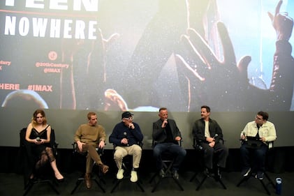 Springsteen: Deliver Me From Nowhere IMAX Special Screening And Q & A CENTURY CITY, CALIFORNIA - OCTOBER 21: (L-R) Odessa Young, Jeremy Strong, Jon Landau, Bruce Springsteen, Scott Cooper, and Daniel Wall speak onstage during the Springsteen: Deliver Me From Nowhere IMAX Special Screening and Q & A at The AMC Century City 15 in Los Angeles, CA on October 21, 2025. (Photo by Alberto E. Rodriguez/Getty Images for 20th Century Studios ) (Alberto E. Rodriguez/Getty Images for 20th Century St)