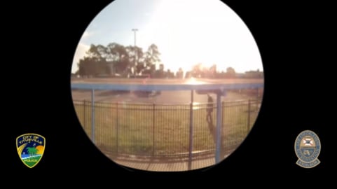 The person was observed walking into the high school parking lot and taking photos of the ground and sections of the campus from outside the fence.