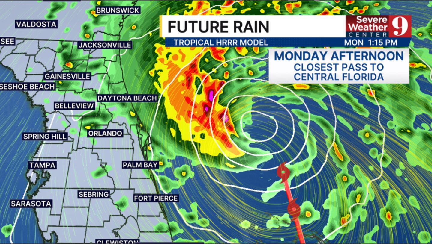 The closest pass of the system to Central Florida will likely be in the daytime hours on Monday.