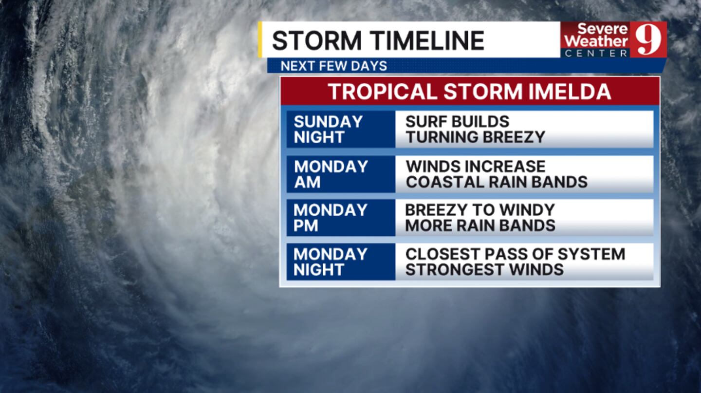 Imelda is expected to turn eastward, away from the southeastern US, Tuesday into Wednesday.