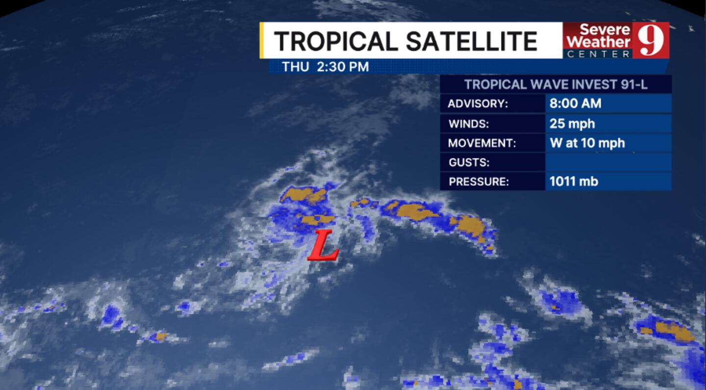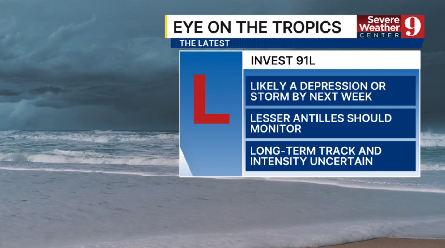 The complex, now named Invest 91L, sits between the Lesser Antilles and the Cabo Verde islands in the open Atlantic.