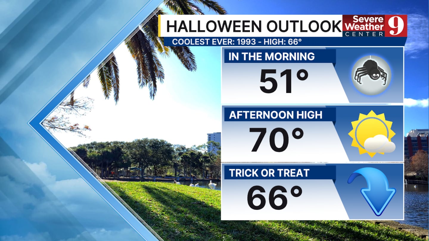 Overnight it will get even cooler. As we welcome in Halloween, Crimi said temperatures will fall into the 40s and 50s, with a low of 51° in Orlando. It will be one of the coolest Halloweens in Orlando in over 30 years. In 1993, Orlando’s high hit 66°, making it the coolest on record.