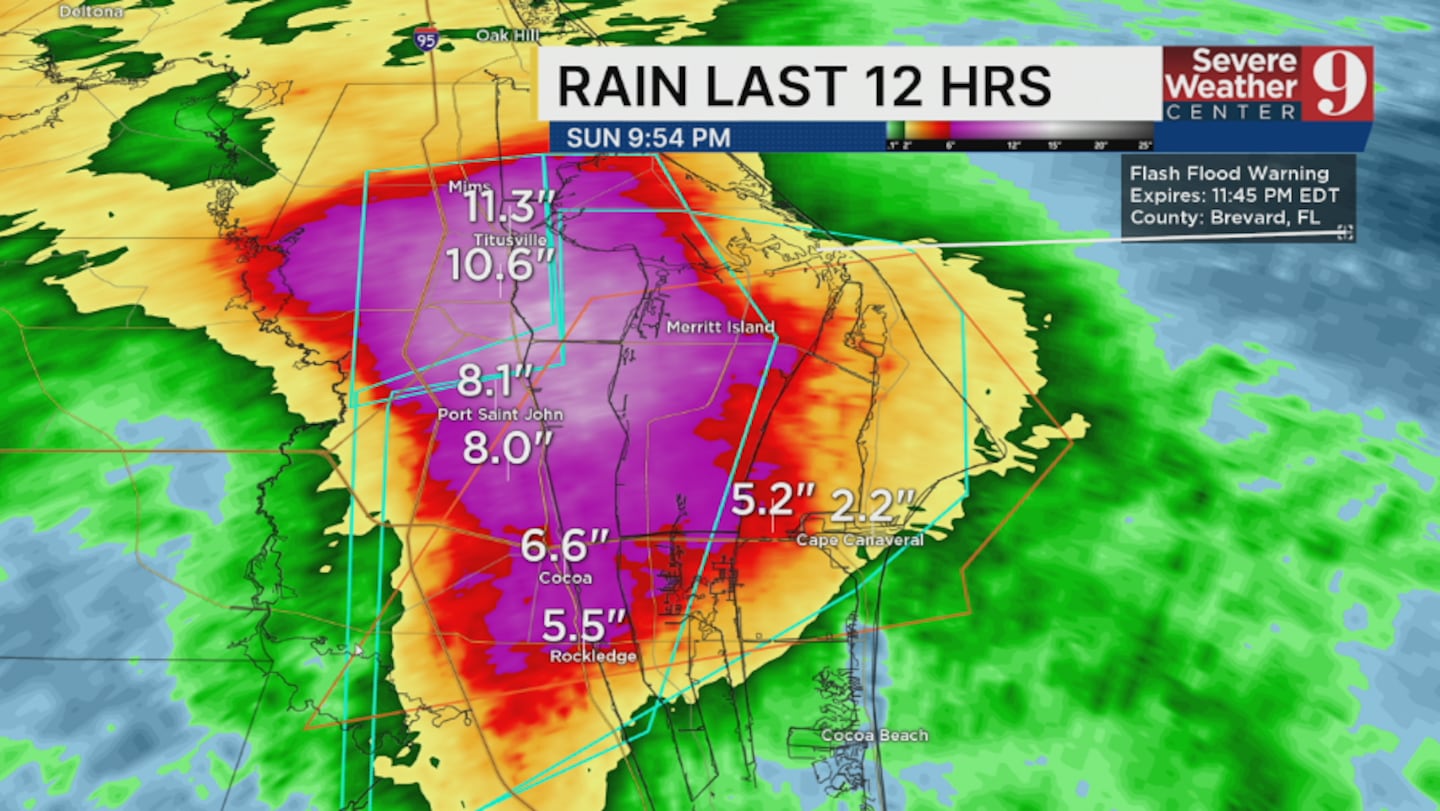 Flash Flood Warning for northern Brevard County has been extended until 10:45 PM.