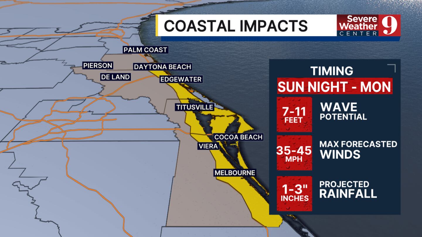 Right now, waves and marine impacts will likely arrive Sunday night.