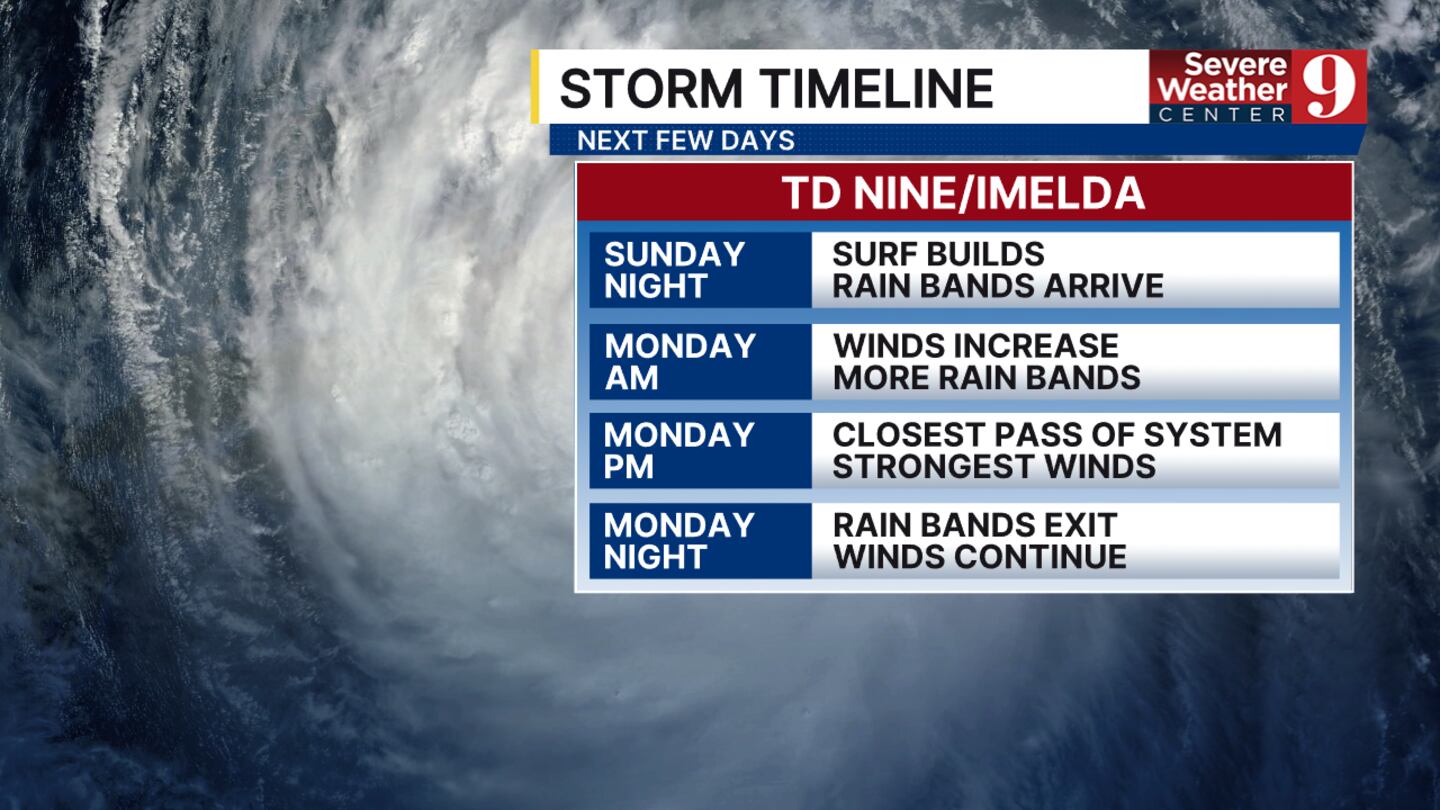 ORLANDO, Fla. — Tropical Storm Imelda is lifting northward across the Bahamas, and impacts along the coast are likely Sunday night through Tuesday.