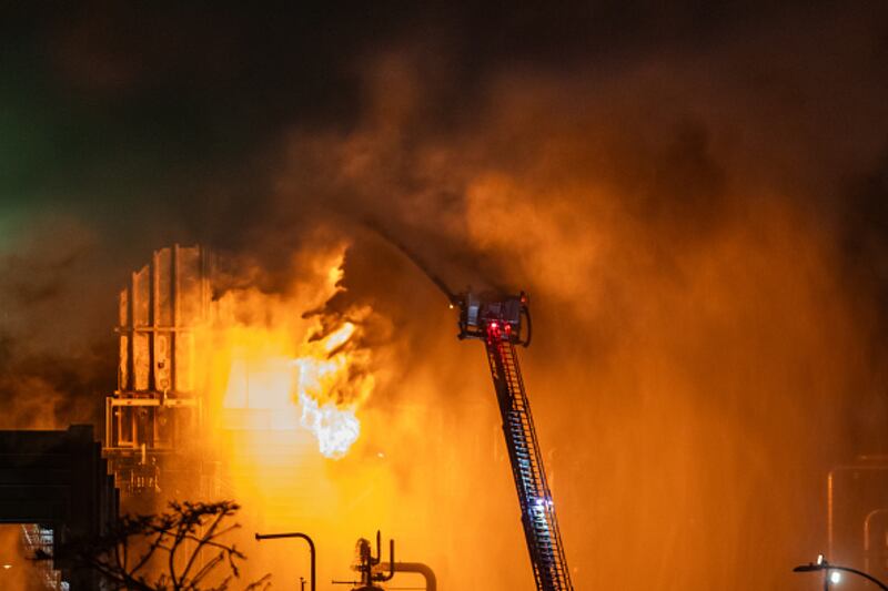 Residents were being advised to stay inside and away from the site. Officials are monitoring the air quality and had not seen any elevated levels of toxins, but that could change.